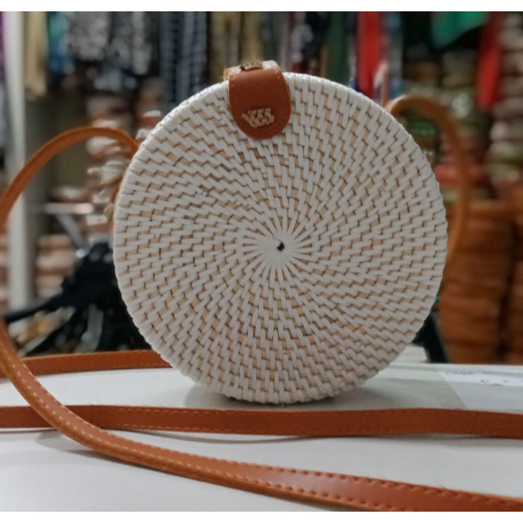 TAS ROTAN BULAT POLOS WHITE DIAMETER 15 CM Shopee Indonesia , Sumber : shopee.co.id